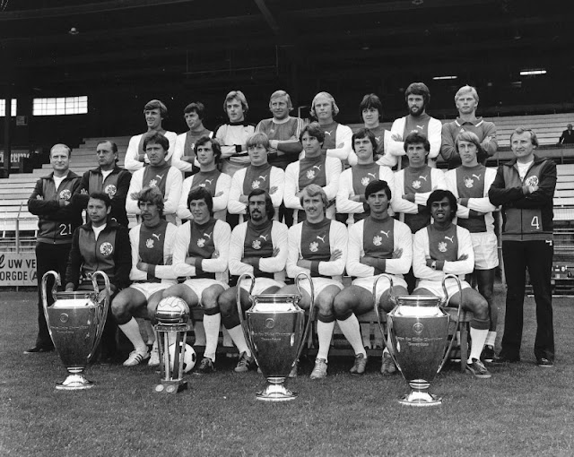 1 januari 1975 –Selectie Ajax. Achter vlnr: Krol, Suurbier, Tervoort, Schrijvers, Geels, Lamain, Erkens en Jager. Midden vlnr: Wolff, Haarms, Mejer, Lubere, Lerby, Dordt, Arnesen, Everse, Zuidema en Langenberg. Voor vlnr: trainer Juic, Helling, Bouwma, Notten, Schoenaker, Ling, en Tahamata.